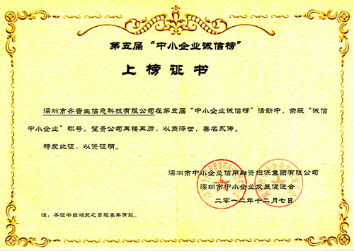 • 誠信中小企業證書